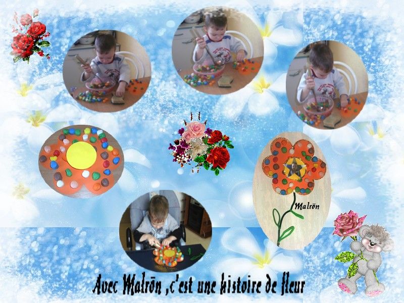 Voici l'activité que Maëven a réalisé.Une fleur de printemps très colorée.Les garçons se sont bien amusés!